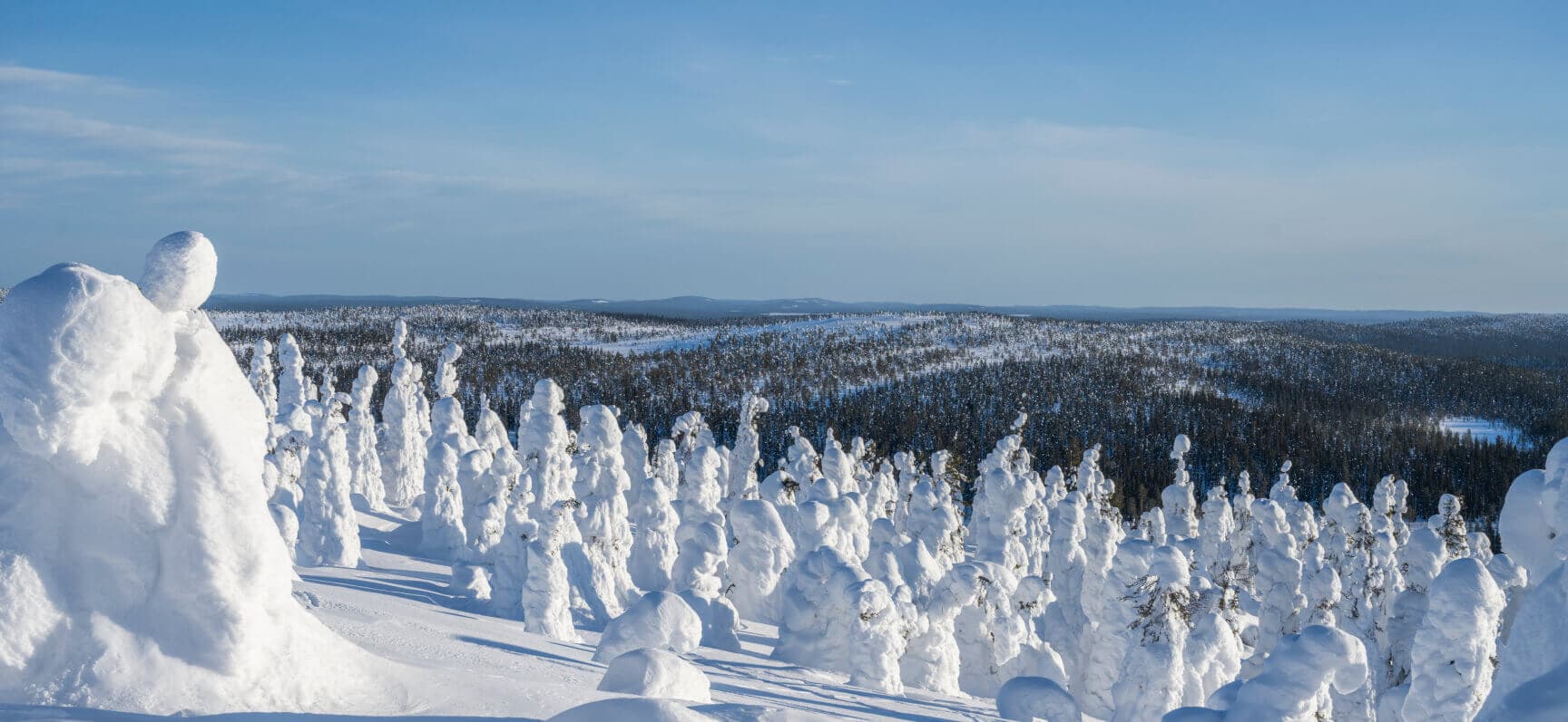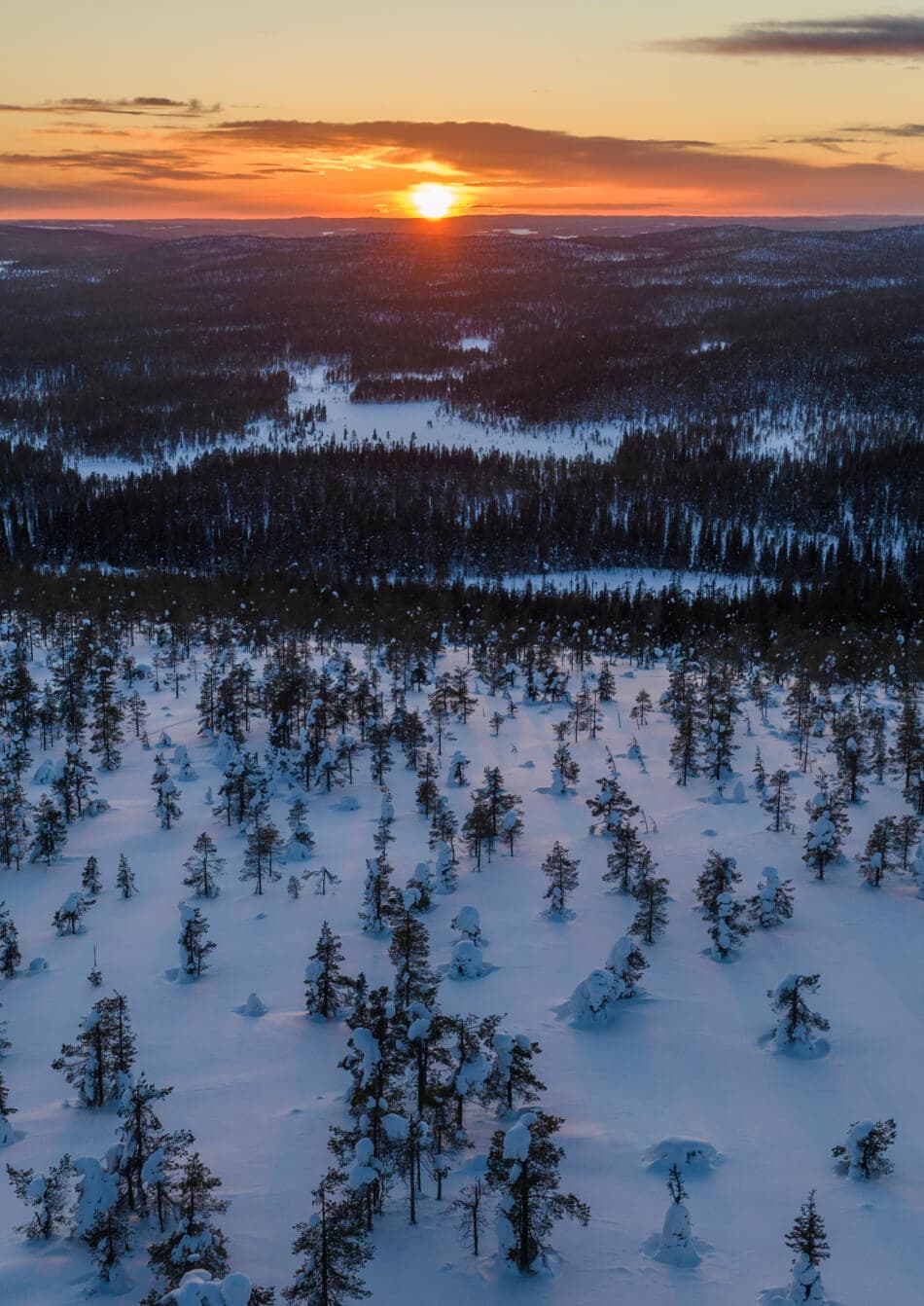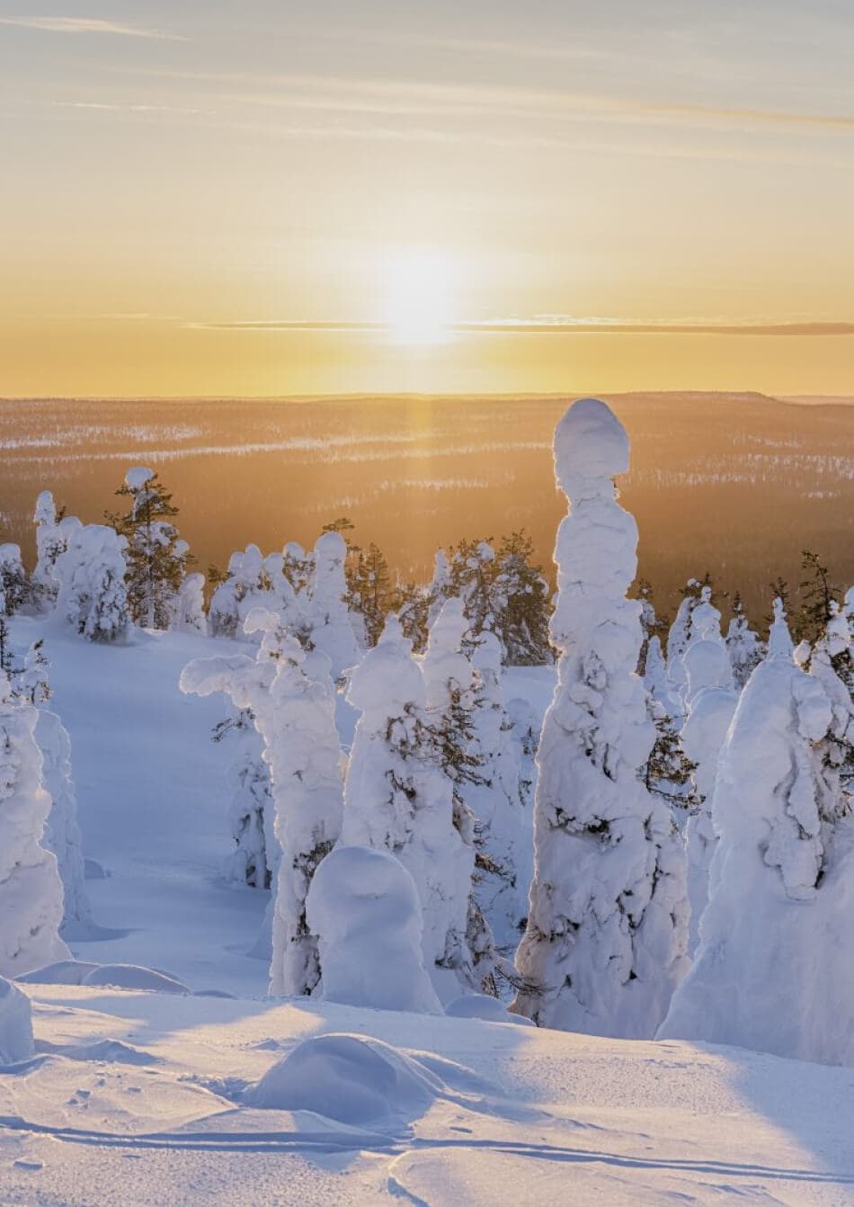 Experience the beautiful arctic circle nature, wilderness with snow-covered trees