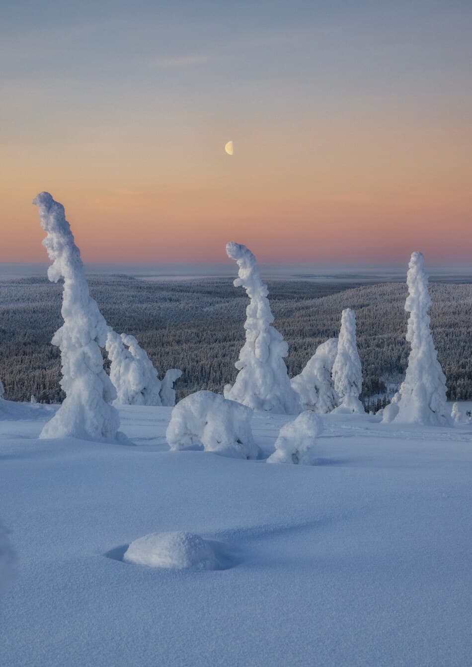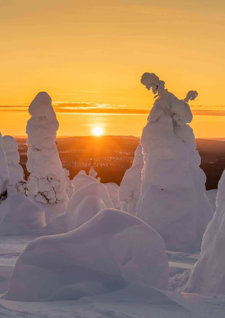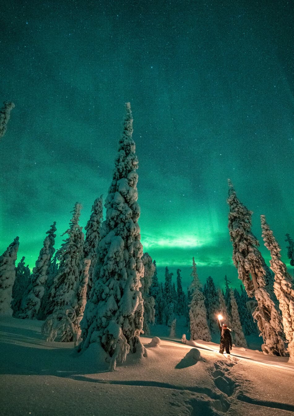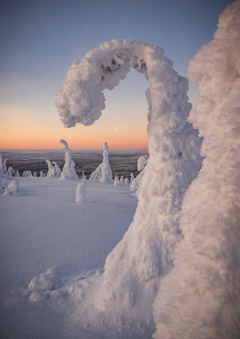 Experience the beautiful arctic circle nature, wilderness with snow-covered trees